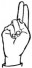 На ћирилици написано ВУКОСАВ ДУЊИЋ састоји се из 12 слова [?]. Исписано ћириличном једноручном азбуком за глувонеме:
